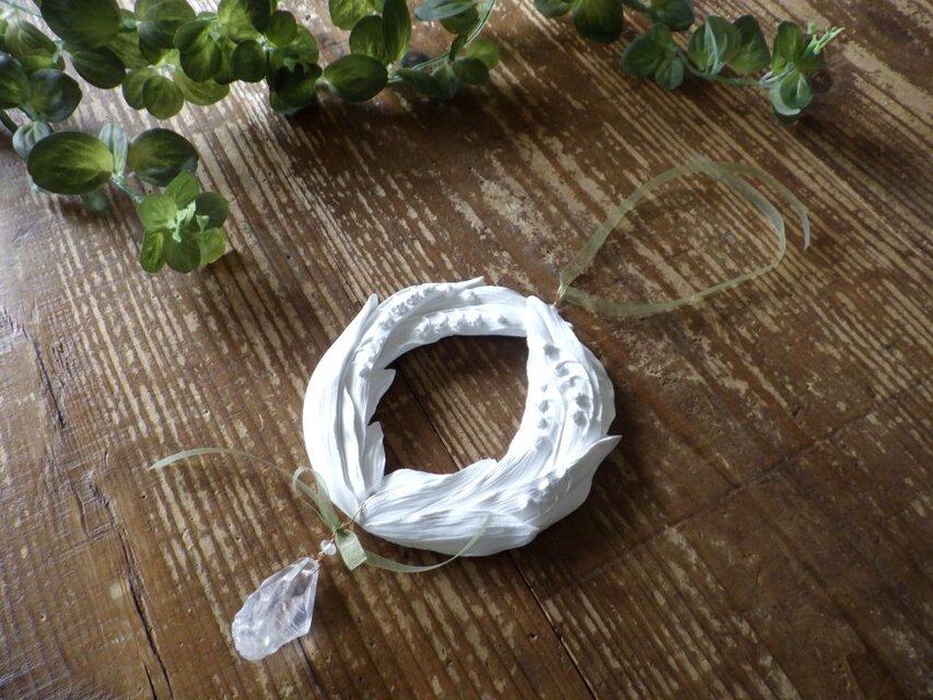 大きな鈴蘭のリース■ アロマストーンとして使える オーナメント ■ 水晶つき
