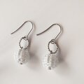 白とシルバーカラーのビーズで編みあげたビーズボールをピアスに仕立てました