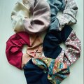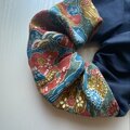 着物生地とコットン生地を組み合わせて作ったシュシュです。