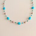 鮮やかなブルーターコイズに、ブラウンカラーの淡水パールをプラスした