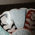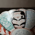素敵な色合い◆波縁で可愛い。瀬戸焼 花文色絵金彩大鉢 骨董・antiques 青海波 雷文繋ぎ 大正期 i1
