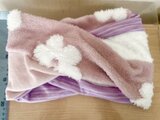 ふわふわフラワーピンク&パープルハンドメイドネックウォーマー寒さ対策に最適です