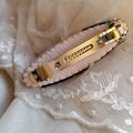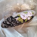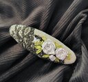 ナチュラルリネンに黒アンティークレースをのせて、リボンとビーズで刺繍したバレッタです。