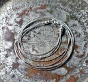 繊細筒型シルバービーズのシンプルな3連のネックレスです。