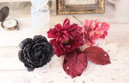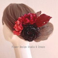 黒いラナンキュラスとボルドーのダリアの髪飾り Uピン ラナンキュラス ダリア 紫陽花 ボルドー シック ダンス フラメンコ 花
