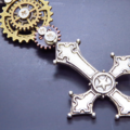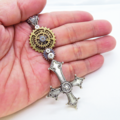 アンティークシルバーの大きめロザリオと歯車を組合せたペンダント・ネックレスです