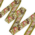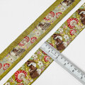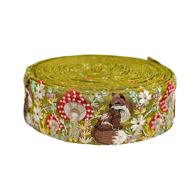 インド刺繍リボン50cm切り売り キツネの森 グリーン 4.6cm幅 花 HC 狐 きつね フォックス R-0811