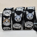インド刺繍リボン50cm切り売り キャットフェイスM ブラック 3.5cm幅 HC 猫 ねこ R-0812
