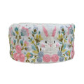 かわいらしいバラの花畑にたたずむうさぎの柄です。
