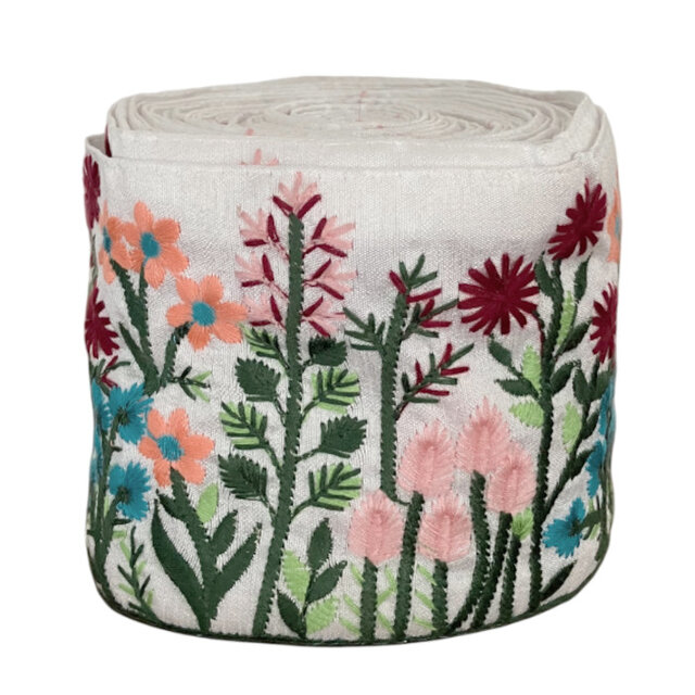 インド刺繍リボン50cm切り売り フラワー フィールド 9.7cm幅 花 HC R-0819