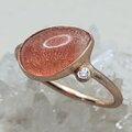 苺果肉のようなゲーサイトが一面に漂う「勝利の女神」ストロベリークォーツに小さなダイヤモンドを添えてスイーツのようなリングを作りました*大流星群のような微細なゲーサイト1本1本が赤、ピンク、ブルー、グリーンに煌めきます*こちらはポイント頂点を中心にカットされた特別なルースで濃色の帯を中心に全方向からゲーサイトが集合した放射状の煌めきが見られます*ややピンク味を帯びたK10リングはアンティークマット仕上げ、10~18号(推奨サイズ)の範囲を目安に調整可能、サイズ確定後にマットな覆輪で石留め致します※全く異なる石のピンクエピトード、人工ガラス石チェリークォーツ、クラックに染料を染み込ませた水晶までも希少であるかのように『ストロベリークォーツ』と称してるケースが非常に多く注意が必要です。。レピドクロサイトinタイプもありますが希少さはゲーサイトinタイプが断然*諸説ありますがロシア産といわれる殆どがカザフスタン産であり加工の為アジア圏に渡った後に何故かロシア産と付けられたとの説を有力視します。。ロシアとカザフスタンは数千キロもの国境隣接国であり鉱山は4000m級という話を加味すれば国境である山脈の何処かで採掘されていたのでは?アジア圏から見れば同じ方角に位置することもあり単純に『ロシア』と発せられても何ら不思議ではない…と想像するに難くありません。。偽石があり諸説があるのもそれだけ人を魅了する石ならではの事*手に入れるなら既に採掘できなくなり『幻の水晶』との呼称まであるゲーサイトinストロベリークォーツを***