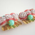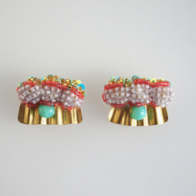 シャープでデザイン性の高い立体ビーズ刺繍と真鍮のピアス。