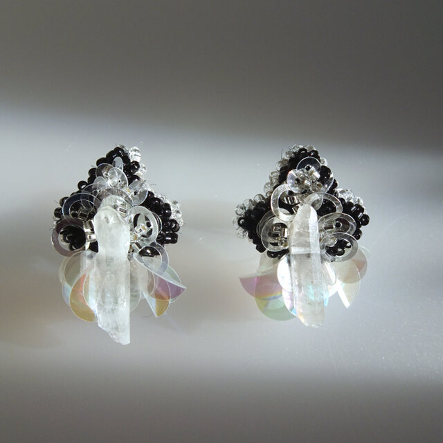 すっと立つように輝く氷柱水晶がイヤリングに気品を添えます。