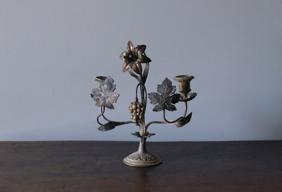 教会 燭台 百合 葡萄 キャンドル スタンド フランス アンティーク 0502327