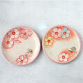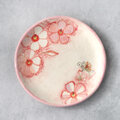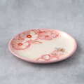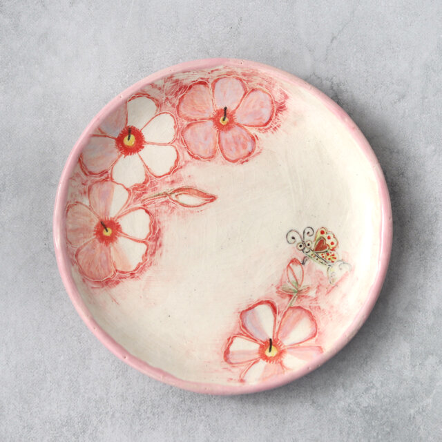 花模様と蝶絵の手描き皿(ピンク)