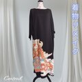 d105 3Lサイズ【一点もの】黒留袖リメイク サッシュベルト付きパーティードレス / フォーマルワンピースドレス マキ