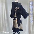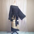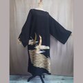 正絹黒留袖を丁寧に解き、2羽の鶴が空に向かって力強く羽ばたく豪華な金駱駝・刺繍の柄を最大限に活かして仕立てたロングドレスです。
