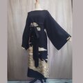 d92 3Lサイズ 着物ワンピース サッシュベルト付き 黒留袖 着物リメイク 着物ドレス マキシ丈ドレス