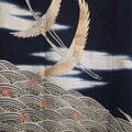 裾に広がる波と雲海の文様が、鶴の飛翔をより一層ドラマティックに演出。