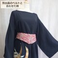 付属のリバーシブルサッシュベルトは、表側に鶴と波濤の柄を効かせ、裏側はシンプルな黒レース。