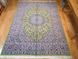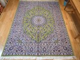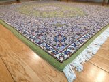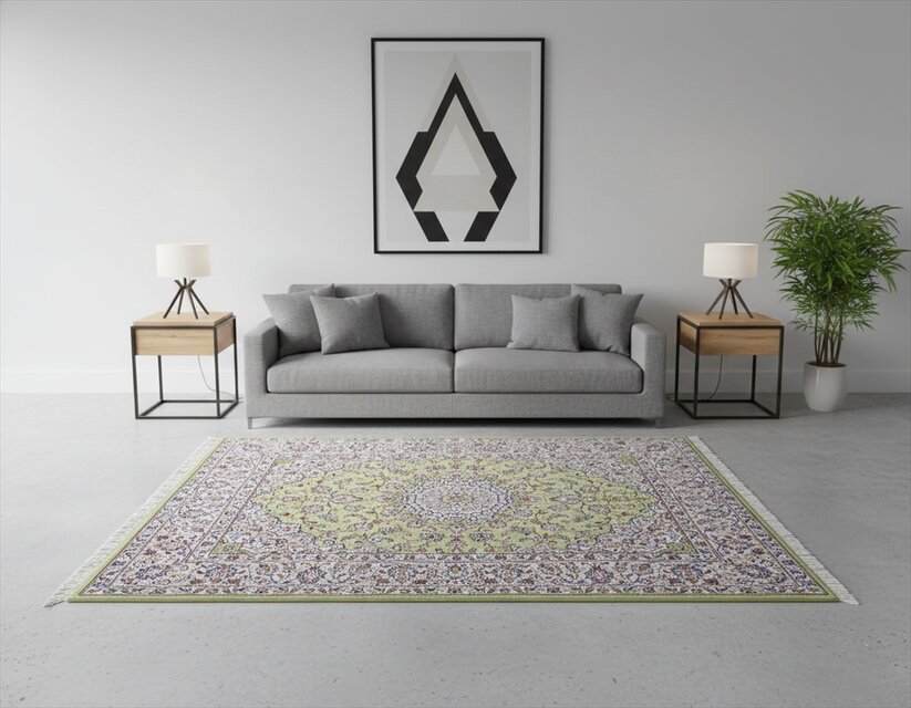 5大産地のカシャン産 空間をエレガントに演出する若草色の手織り絨毯
