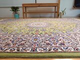 商品名: ペルシャ絨毯 カシャン産 若草色 メダリオン柄