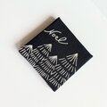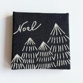 黒に近い濃紺(ネイビー)のコットンにシックな色合いでもみの木を丁寧に手刺繍しました。