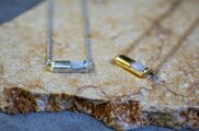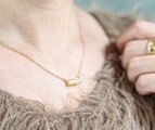 優しいゴールド色で上品な作品です。 五角形の非対称なデザインも素敵です。