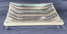 無色透明なガラスとイリディッセントガラスを棒状にカットして組み合わせ焼成し
