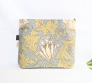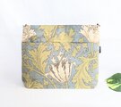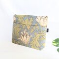 ウイリアムモリスのアネモネ柄アロナブルー地にアイボリーの大きな花柄、綿シーチング地使用の2WAYバックインバックです。