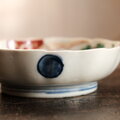 高台に制作時に生じた窯傷、表面に小さな窯傷・ピンホール(針で刺したような穴)・フリモノやひっつき(制作段階に付着した灰の粉やその他付着物)・斑点・色のムラ・色の抜け・個体差による色の濃さの違い・形の歪み・平面に置いた時のグラツキ等が多かれ少なかれございます。