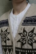 1. フェアアイル模様:ベージュ色の地に、深みのあるこげ茶と紺の伝統的なフェアアイル模様が、冬らしい上品な雰囲気を演出します。