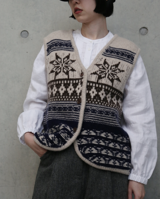 温もりを纏う、フェアアイルニットベスト ウール100% ウールベスト 251208-1