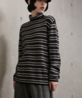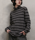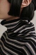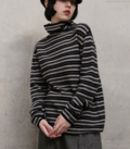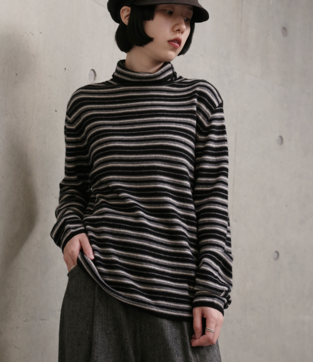 「理想の柔らかさ」の先へ。ヤクのダウンとウール混紡 ボーダーニット タートルネックニット ブラック 251204-2