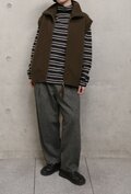 o カーディガンやベストと重ねて。首元から覗くタートルネックとストライプが、コーディネートに立体感を加えます。