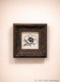小型の作品ですので、ピン一つで壁に飾れます。空間のワンポイントにいかがでしょうか。