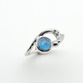 光に透かすと淡い色合いとクラックが見えますが、指に着けると深いブルーがほどよい存在感を放ち、鮮やかに輝きます。
