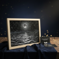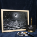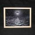 【作品名】:油絵【白黒の満月と星空の海】