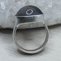厚い雲の下雪が舞う曇天のような雰囲気。グッと目を引く大きなグレーアゲートのシルバーリング、半透明が幻想的な雰囲気を醸し出す艶やかな天然石をお楽しみ下さい*吸い込まれるような着け心地の人差し指がオススメ、リングはギラギラとした鈍い輝きの鋳肌のようなアンティーク調、15~22号(推奨サイズ)の範囲を目安に調整可能(デザイン上、真円ではなくサイズが小さいほど内径がU字に近くなります)サイズ確定後に衣服に優しいマットな覆輪で石留め致します*通常、黒化遅延処理を施しますが銀そのものの変化をお好みの場合は処理不要とお申し付けください*黒化防止ロジウム(最終画像下段色味参照)や各種コーティングをご希望の場合は承ります(オプション1000円)