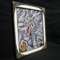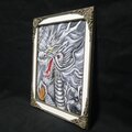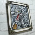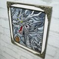 この油絵は、縦272mm × 横242mmのサイズで白色とアンティークゴールドの額縁(縦32.0cm × 横29.0cm × 厚さ1cm)に収められ、シンプルながらも存在感を引き立てるデザインです。壁掛け用の金具も付属していますので、お好きな場所に手軽に飾れ、お客様のインテリアに特別な魅力をもたらします。「白龍」は、大切な方への特別な贈り物や、心に残る瞬間を分かち合う際にも自信を持っておすすめいたします。