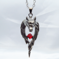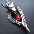 立体的な狼(ウルフ)ヘッドのペンダントネックレス レッドビーズ パンク ロック メンズ レディーズ 長さ調整可 アジャスター可