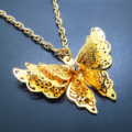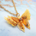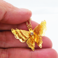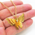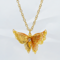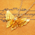 ゴールドカラーにメッキされたアルミ合金の繊細なつくりで立体的な蝶の造形のペンダントネックレスです