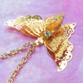 ゴールドカラー バタフライ ペンダント ネックレス 繊細なつくりで立体的に表現された蝶 立体 ラインストーン 長さ調整可
