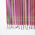 鮮やかな色合わせや単調ではないストライプ。アフリカらしいカラフルな色合わせなのに、決して派手ではなく、不思議と落ち着いた感じのする独特の美しさがキコイの魅力です。端はフリンジ処理が施され、可愛らしい雰囲気に。