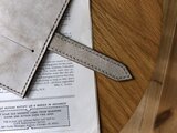 ・お色はグレーです。ワックスものっているので柔らかい印象です。見方によっては、うすいベージュのような色味も感じられ、経年変化ではブラウン色が強くなっていく傾向にあります。