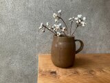 ろくろ挽きのピッチャーに鉄マット釉をかけています。