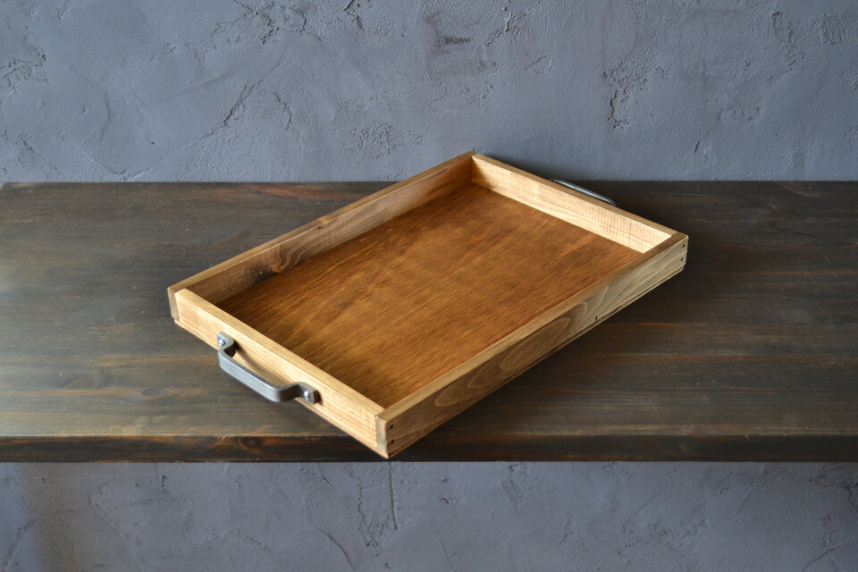 0310mito 国産ひのきのカフェトレイ Lサイズ(シルバーアイアン角)