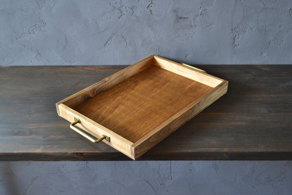 0310mito 日本産ひのきのシンプルカフェトレイ Mサイズ(アンティークゴールドの取手)ずっと使い続けてきたような味わいのある雰囲気が見事に家に馴染みます!真鍮の取手の部分も素敵ですぐにお茶を楽しみたいとと思います。