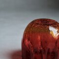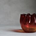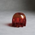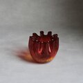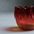 Blenkoの代表的なカラーである「タンジェリン」と呼ばれる燃え上がるようなルビーレッドから、底に向かって透き通るようなアンバーへと変化する美しいグラデーションは、当時の熟練した職人が熱を自在に操ることで生み出した芸術の結晶です。