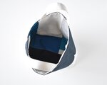 表→片面はパッチワーク仕立て、もう片面は紺色と生成りでバイカラーに